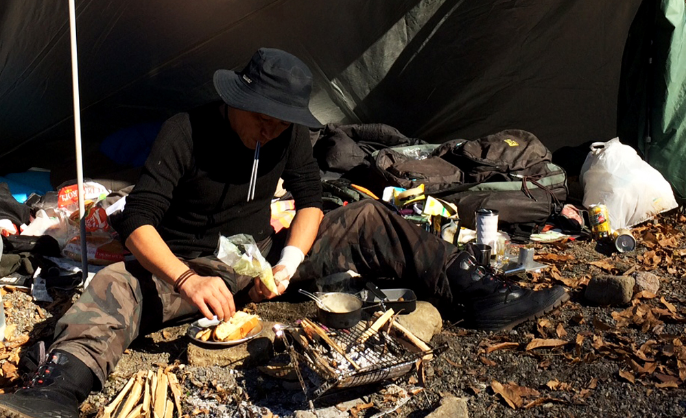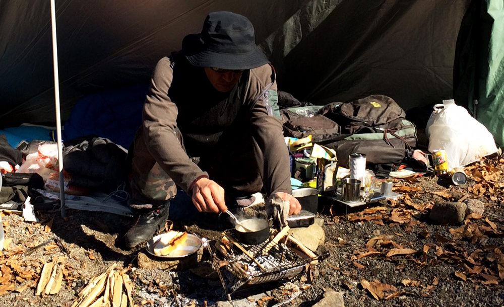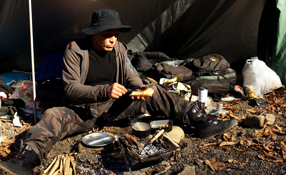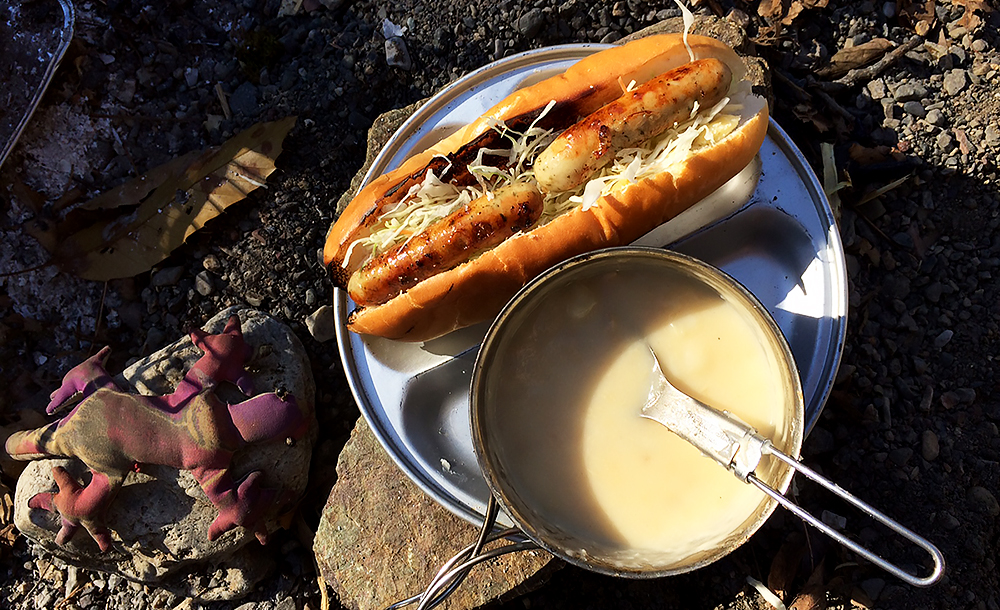 朝食の定番、ホットドッグ。クラムチャウダーも添えて栄養満点。