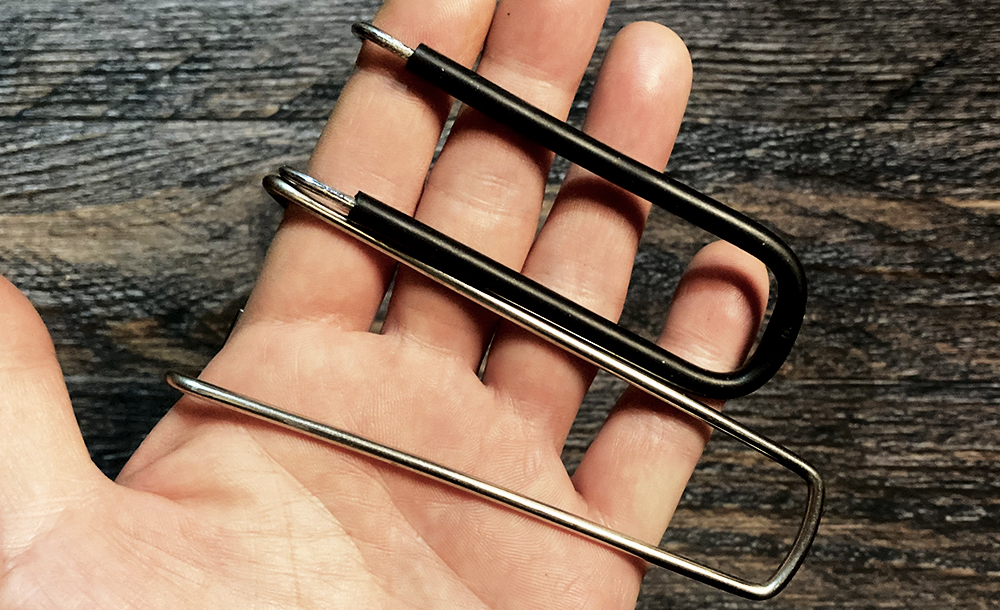 材質をステンレスにしてシリコーンチューブを巻き、ついでに軽量化も図って、こんな形にしました。