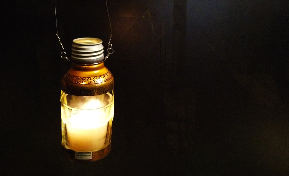 えらく簡単に作れますが、乳白色のボトルがいいディフーザーになって素晴らしい雰囲気の灯りになります。