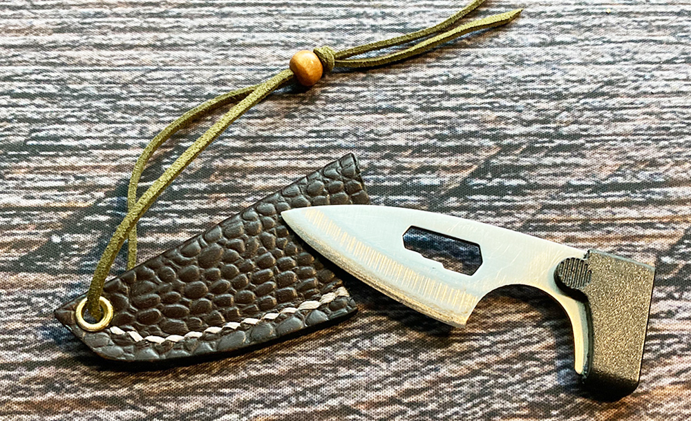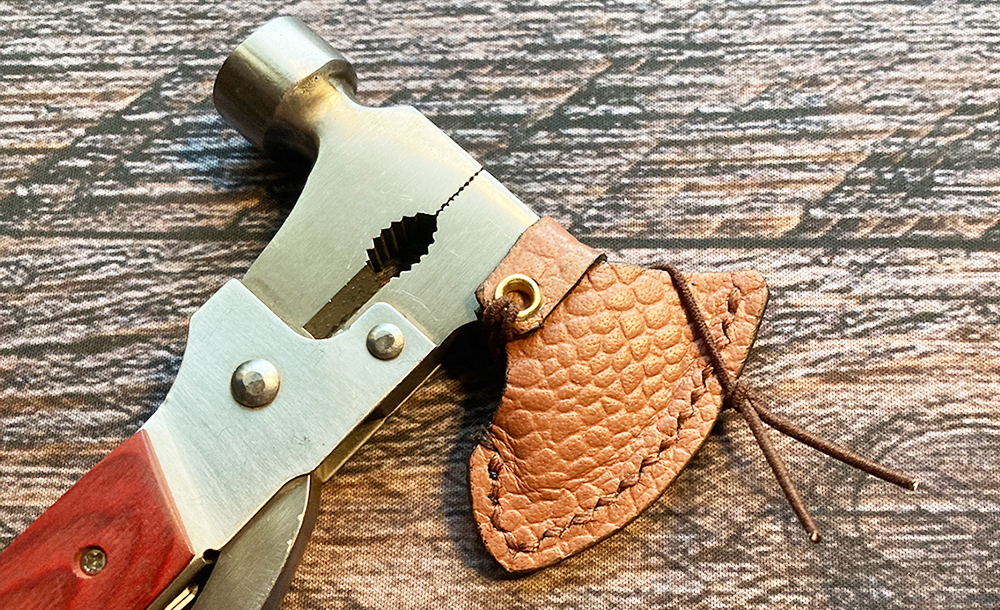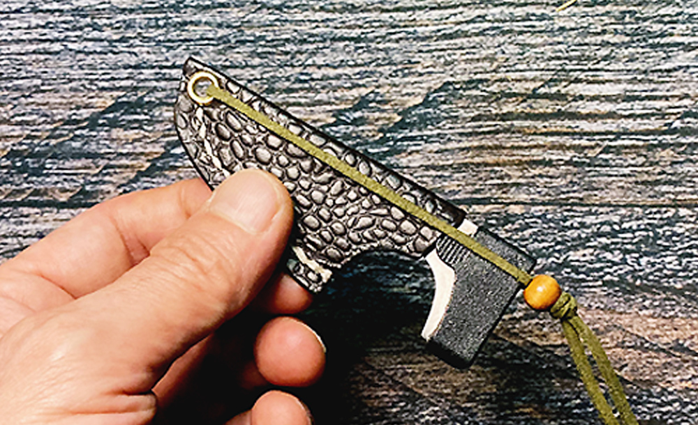 シースを付けたままでもペンチが使えるよう、こんな形にしました。これもゴム紐で留める仕組みです。
