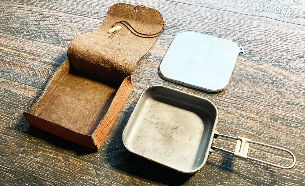 キャンプ地でフライパンを取り出した後は、レザートレイとして小物入れに。