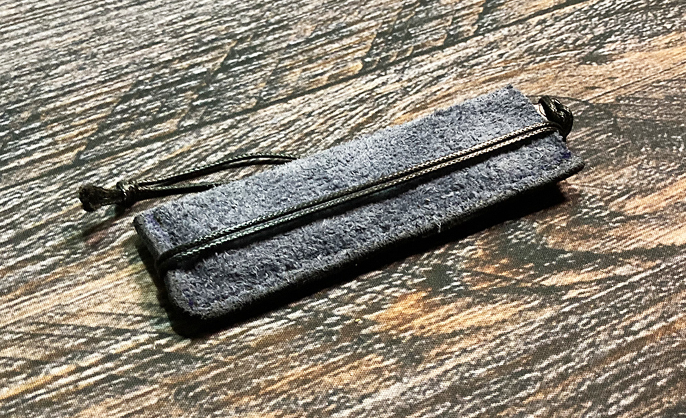革の裏面は吸油性が高いので、表裏を逆にして作りました。レンズ拭きとしても使えます。