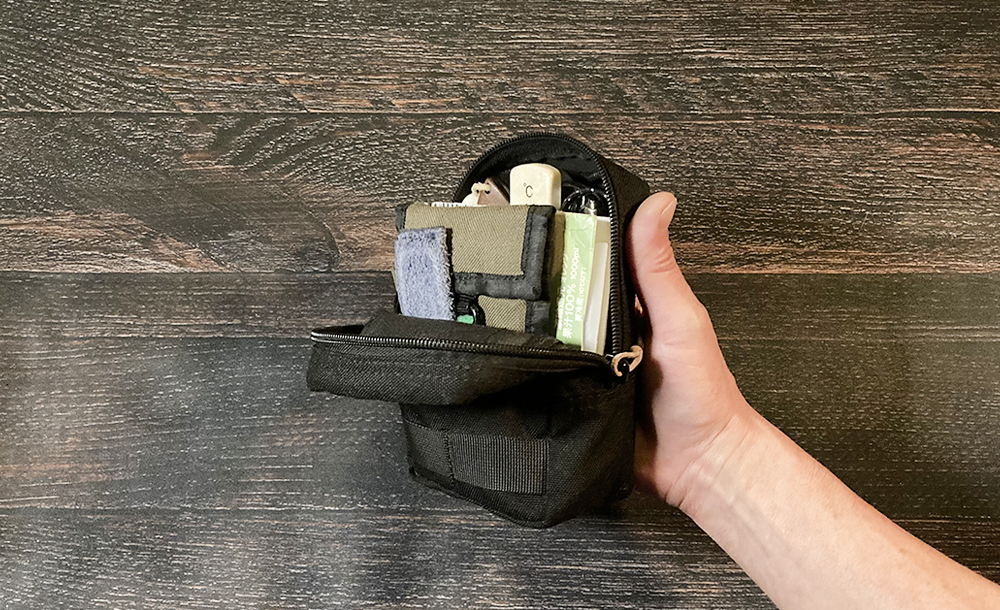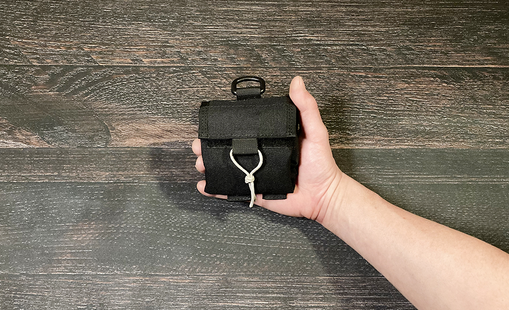 小さなポケットとメッシュポケットがあり、EDCツールと携帯灰皿を入れています。