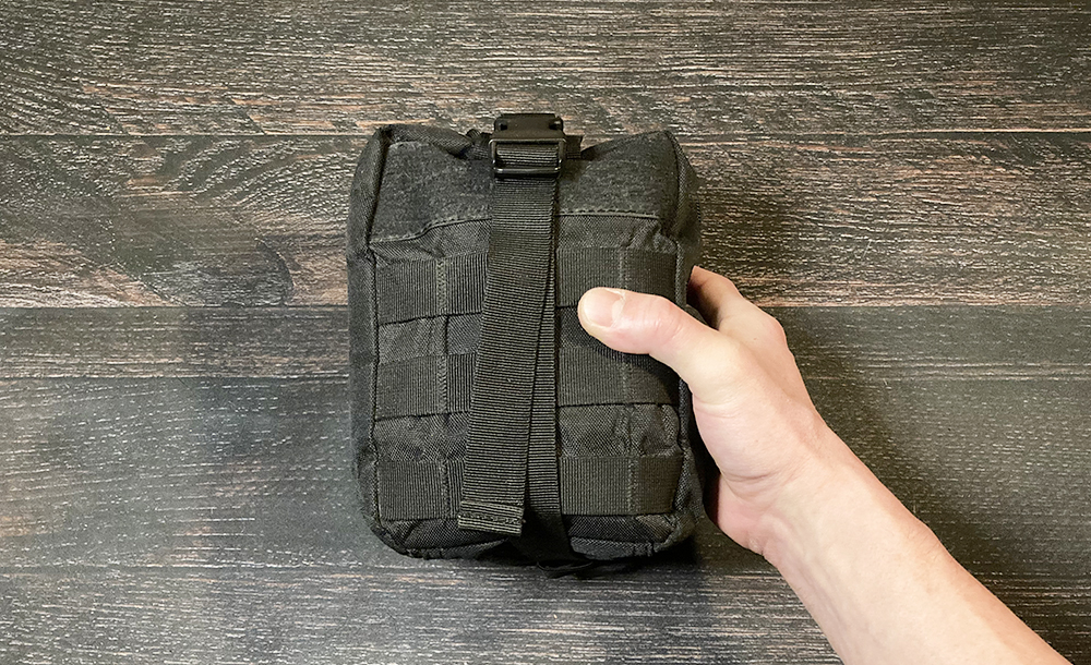 容量は20リットルで、幅が17cm以下のものしか入りません。小容量ですが、前面と左右にモーリーストラップが付いていて、いろいろ外付けできます。