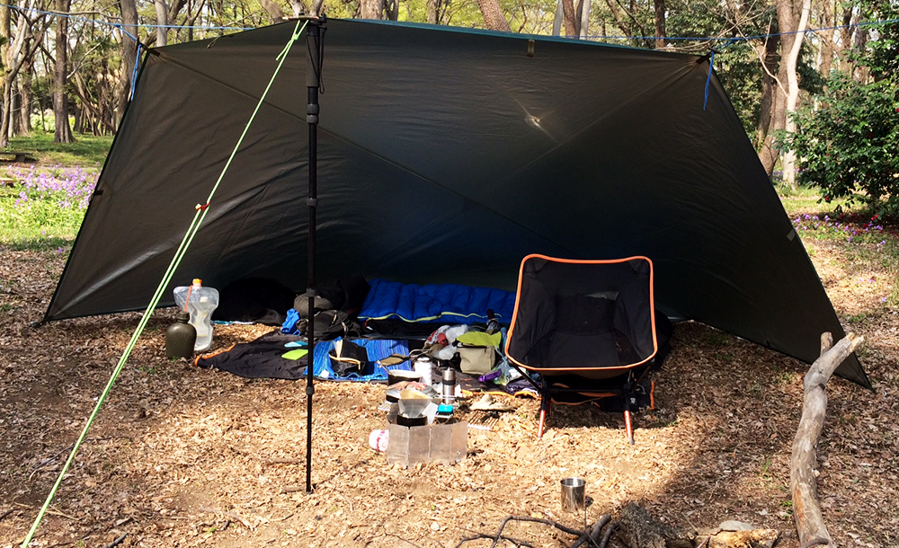タープ泊で地べたスタイルが多くなったので、椅子を使うことは少なくなりました。今はブランケットを畳んで座布団にすることが多いです。