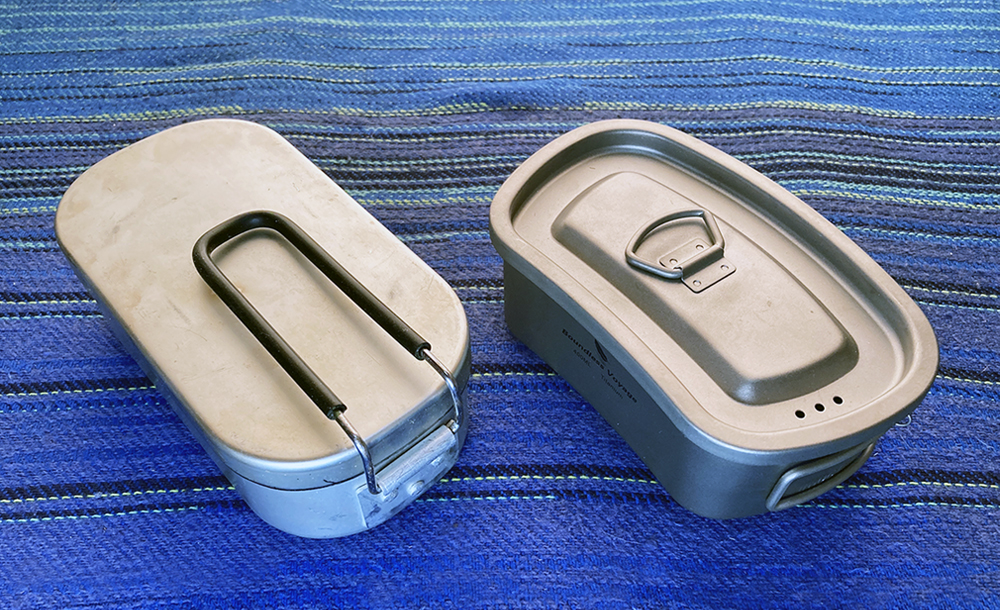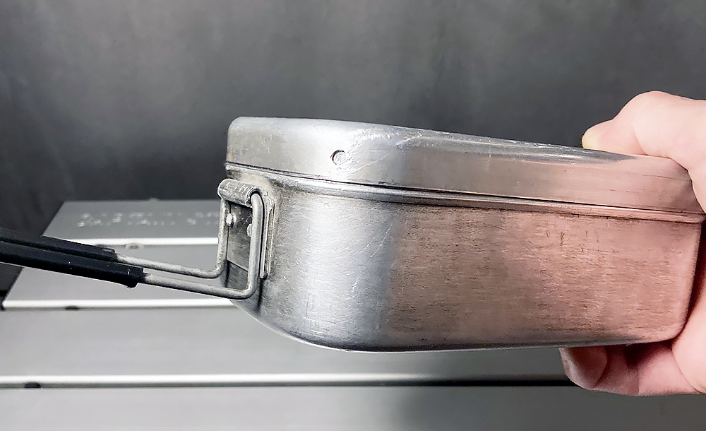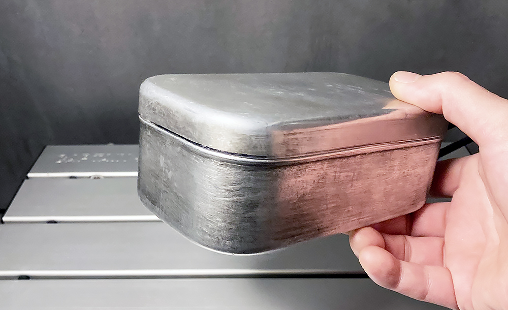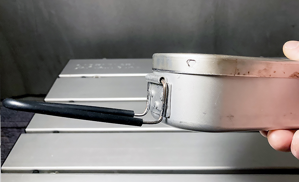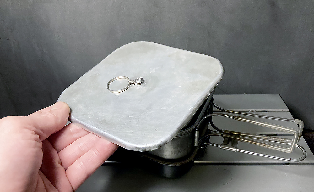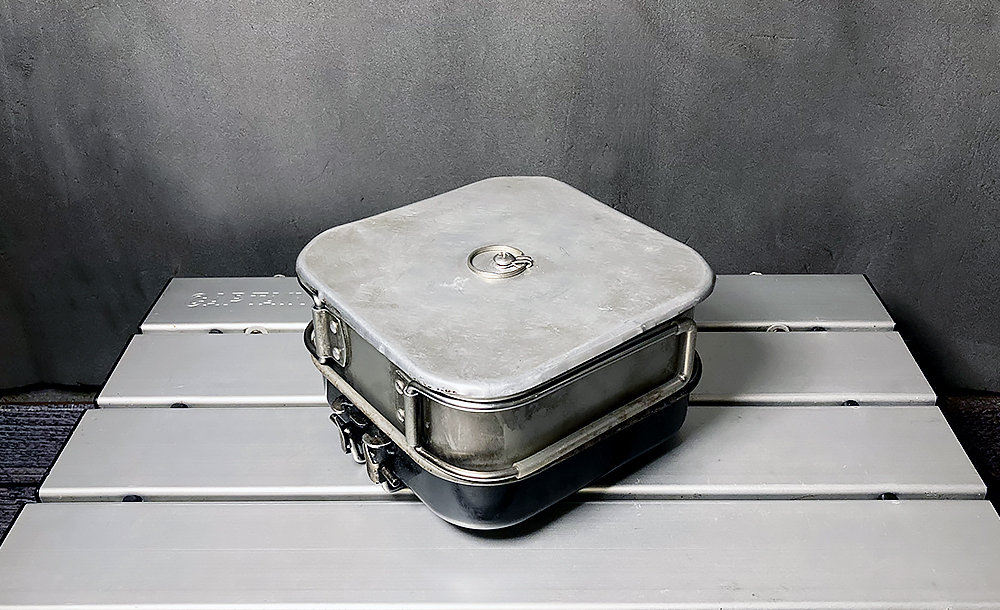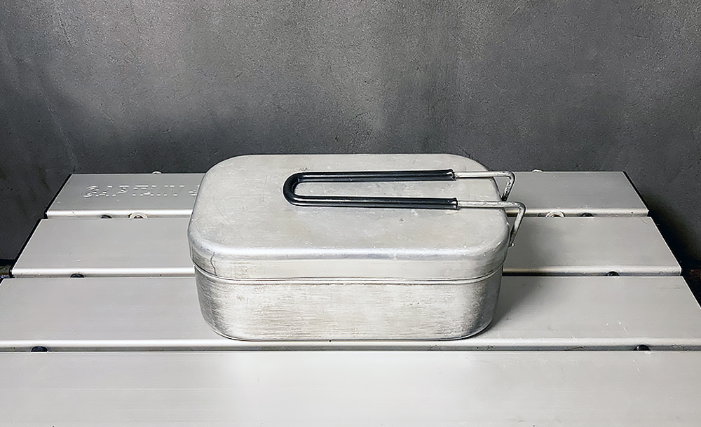 炊飯といえばメスティン。ご飯ものはこのクッカーにかぎりますね。上のフライパンと一緒によく使うクッカーです。