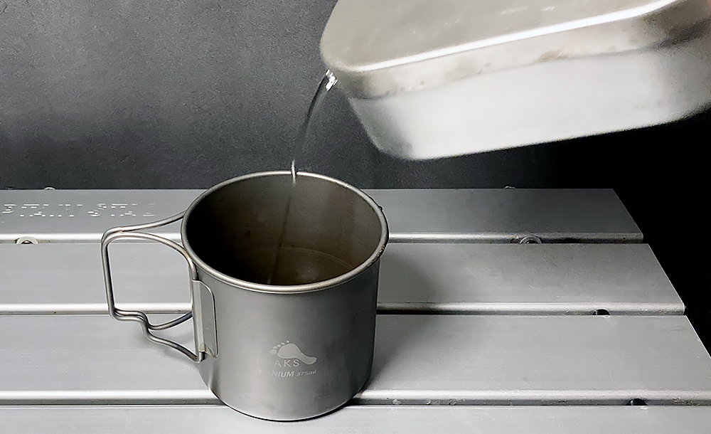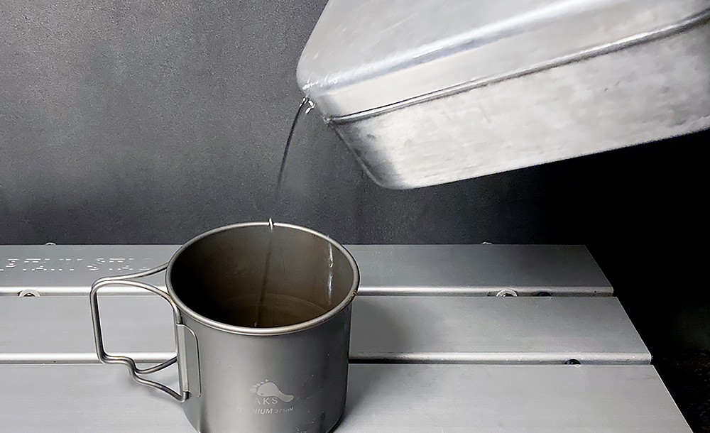 上のメスティンと同様にドリップ用に改造したんですが、こちらの方はフタを閉じた所に返しがないのでちょっと水漏れします。でも普通に注ぐよりはるかに細く注げます。