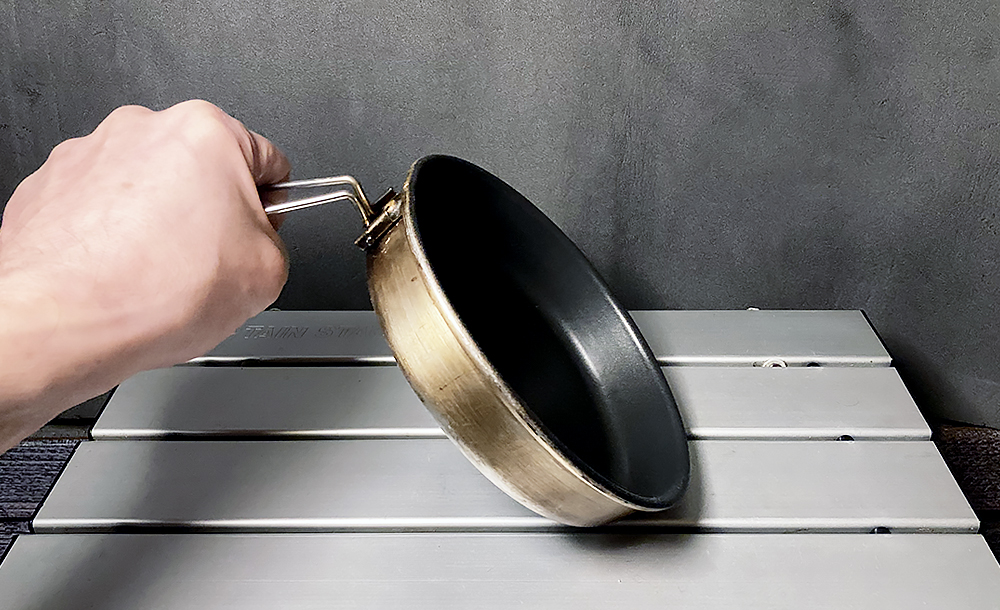 特にフライパンが秀逸。フッ素加工で焦げつかず、ソロには絶妙なサイズ。フライパンだけ持って行くことが多いです。