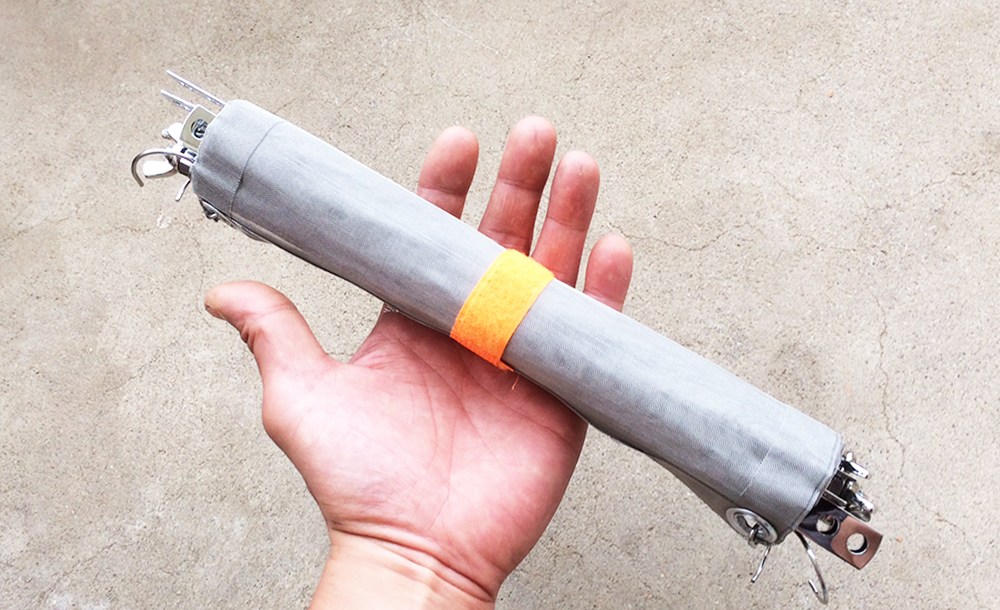 折りたたみサイズは文庫本と同じ大きさで、ガシャっと広げるとこの形になります。米国製。