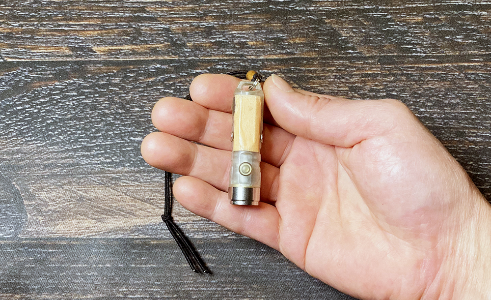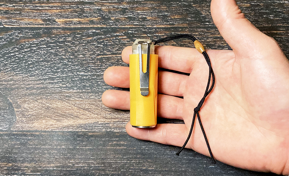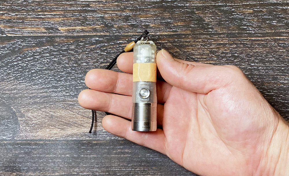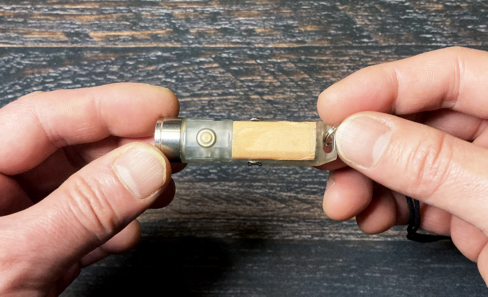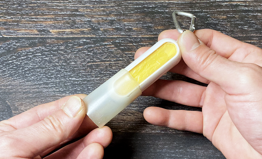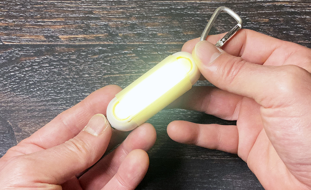 スイッチ2回押しで通常ライト、3回押すと横のLEDが点いてランタンにもなります。