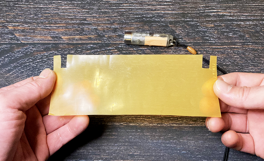 17×6.5cmに切ったオレンジ色のクリアファイル。