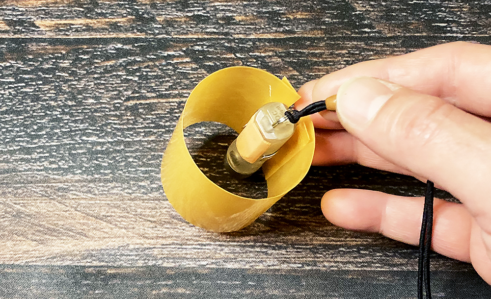 袖をフタに巻きつけて完成