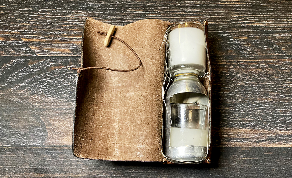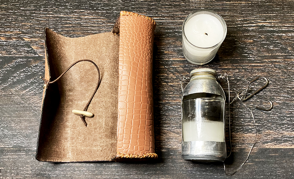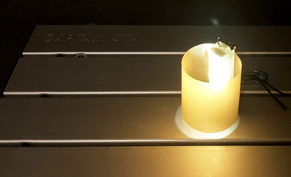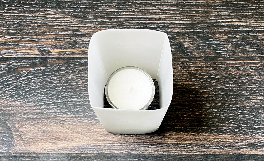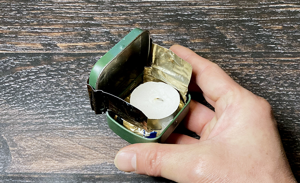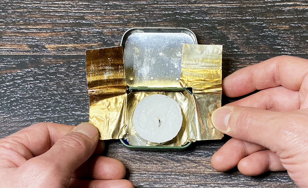 空き缶で作った風防とキャンドルが入っています