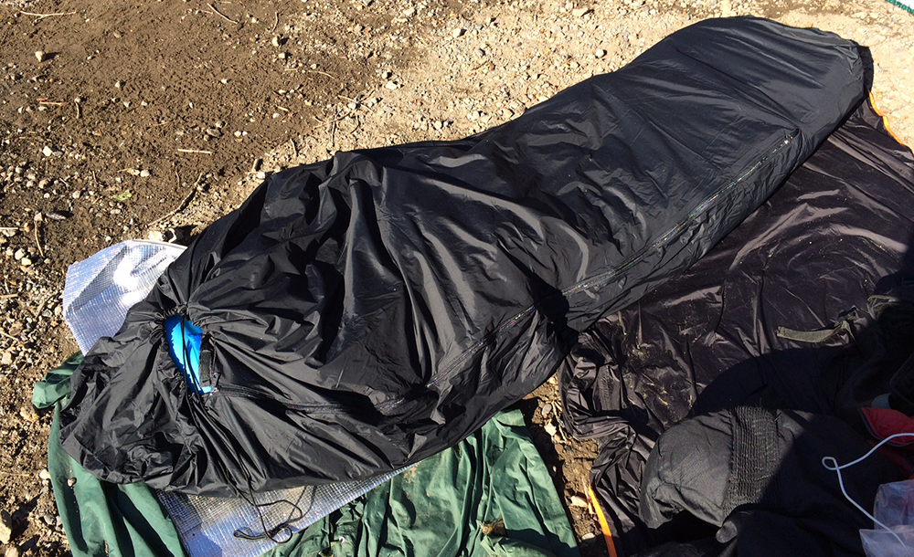 タープ泊することが多いので、大雨でも寝袋が濡れないようシュラフカバーを使っています。