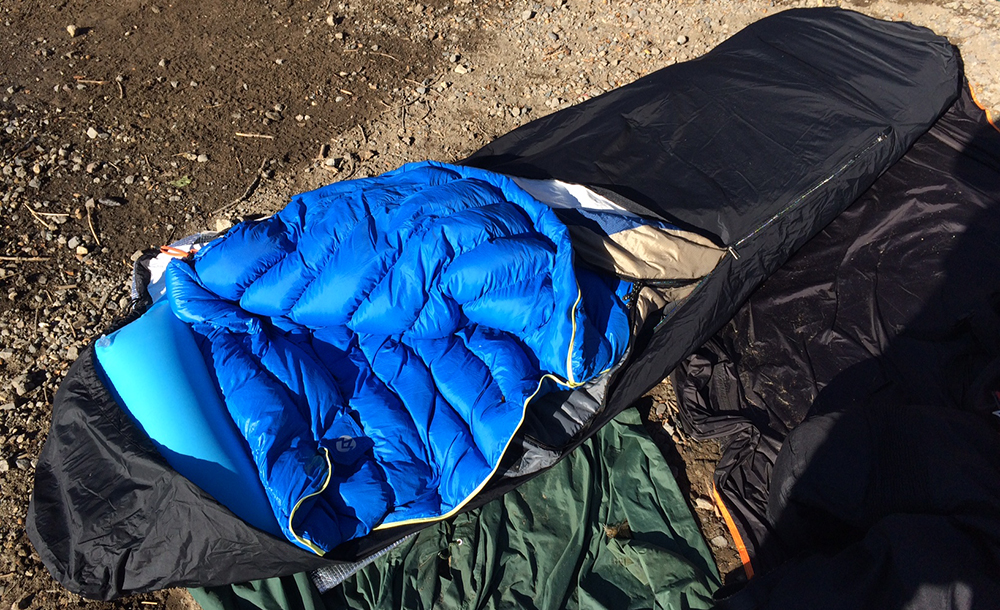 夏用と3シーズン用のダウンシュラフを二枚重ねて使っています。この組み合わせにシュラフカバーとマットで、僕はマイナス10度までは大丈夫です。
