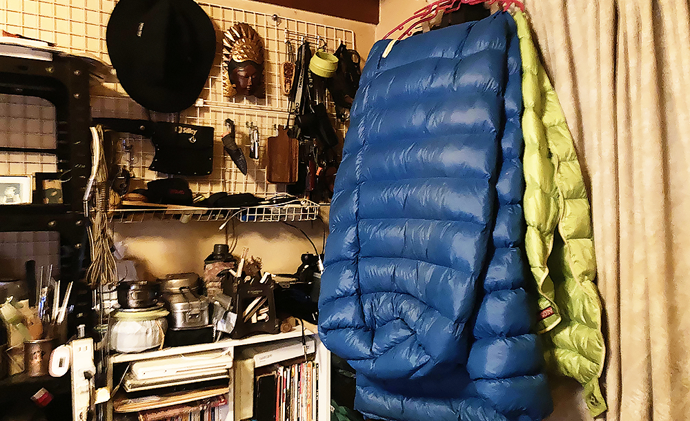ダウンは空気に当てていた方がいいので、どこかへしまったりはせずに部屋の片隅に掛けています。