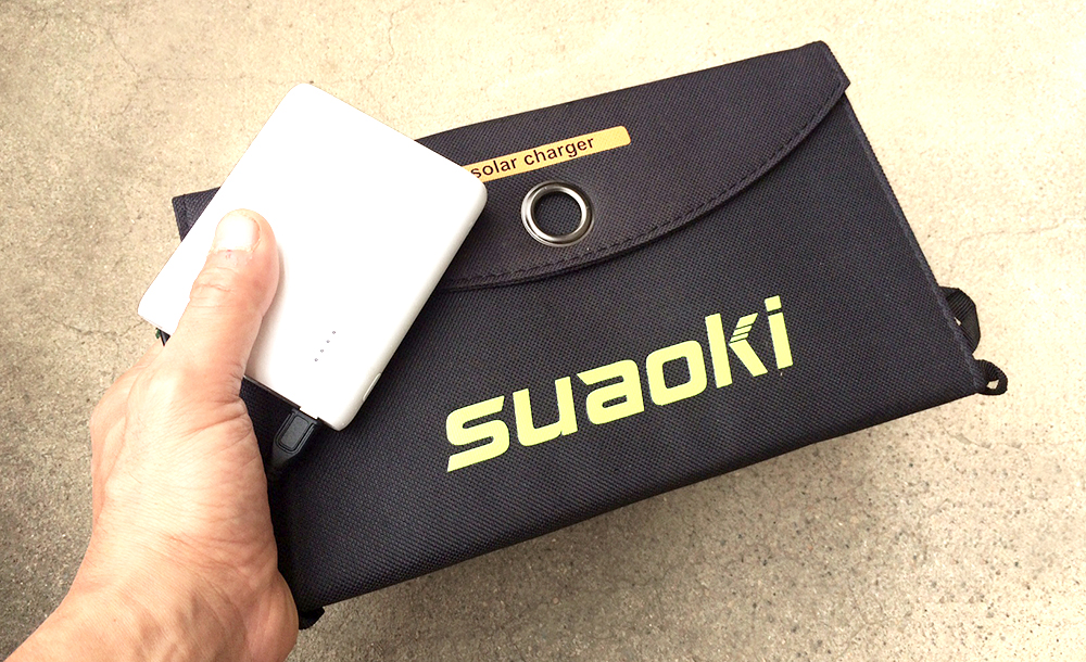 発電出力はそんなに高くないので、機器に直接繋ぐのではなく、モバイルバッテリーに充電して使います。