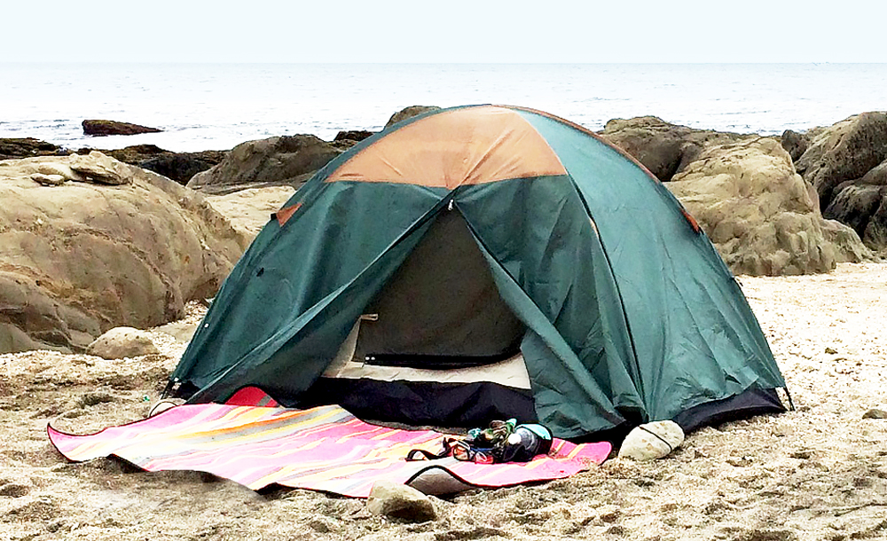こうした自立式テントはどこでも立てられるので、一つ持っていると便利です。