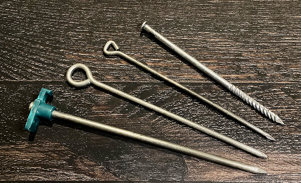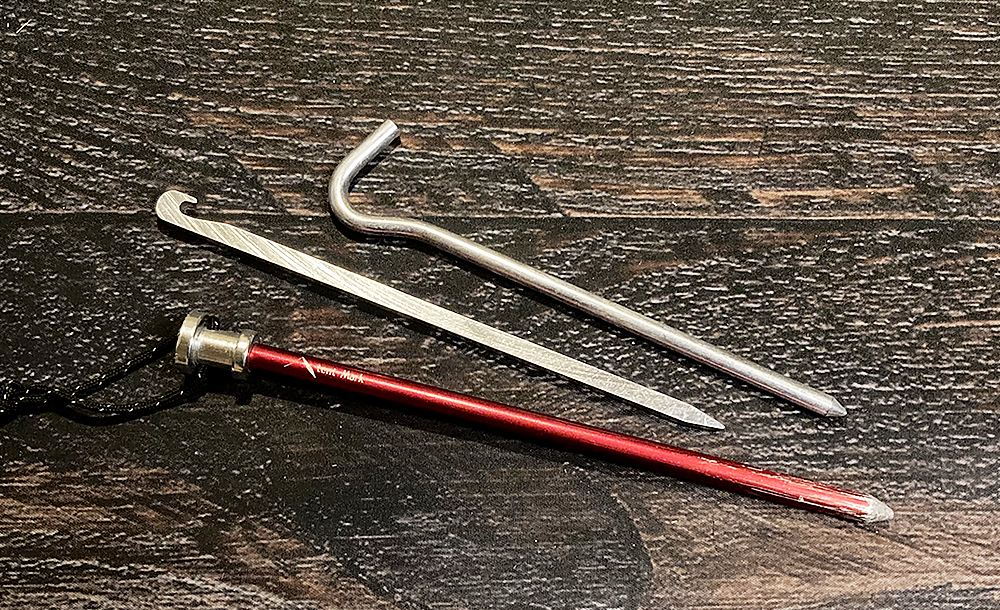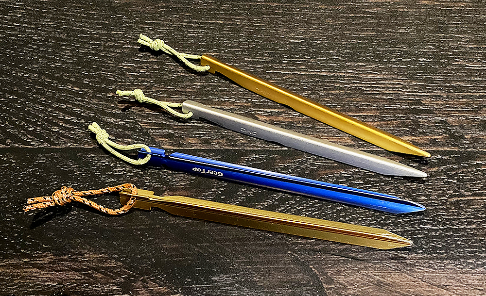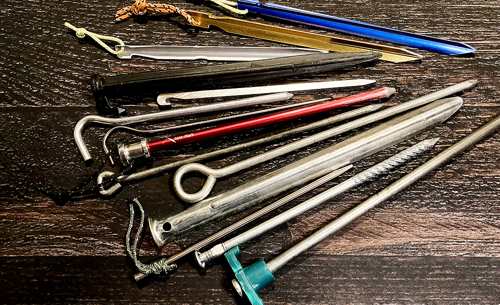 テント付属のペグをしっかりしたものにしようと始まり、いろいろ試しているうちに、いつの間にやらこんなに増えていました。