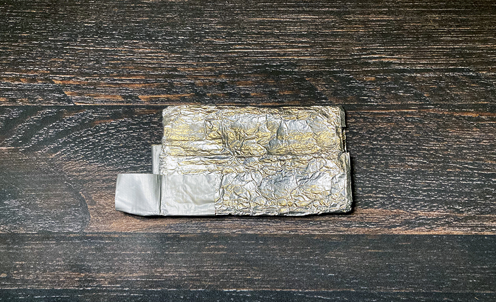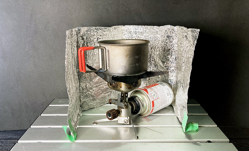 風が強い時は、灰色のガムテープ部分に小石などを置いて安定させます。