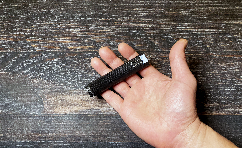 丸めるとこんなに小さくなるし、何かに巻きつけてしまえば荷物にならないので便利。