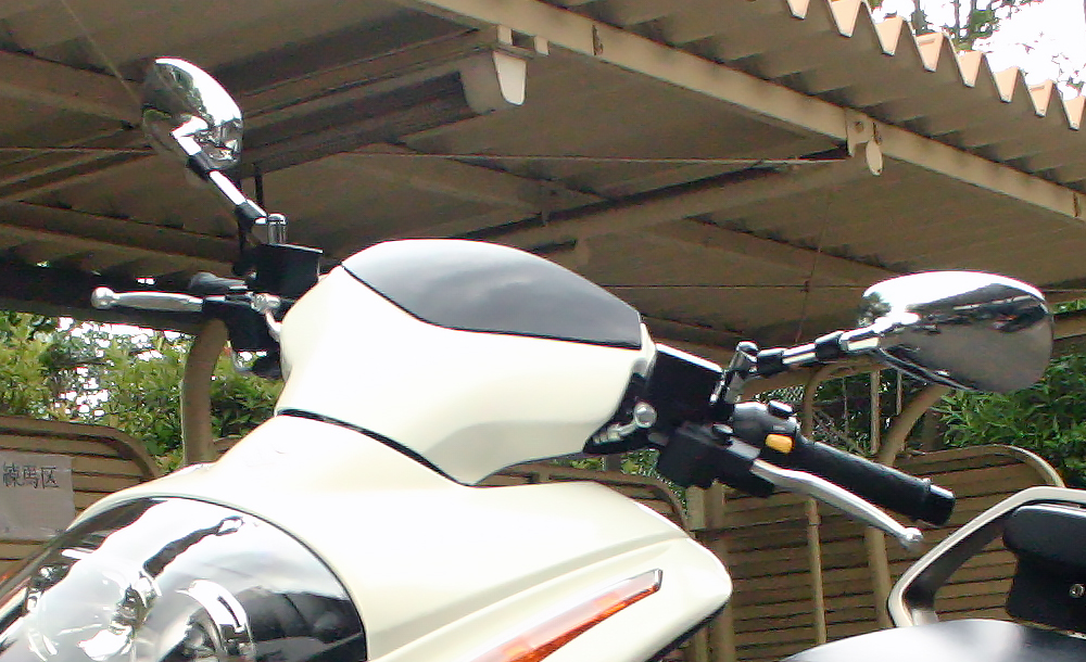 流線型のカウルにこの小さな風防、仰け反るような乗車姿勢もあってか、高速走行では風が頭部に当たり、メットが煽られまくりでした。