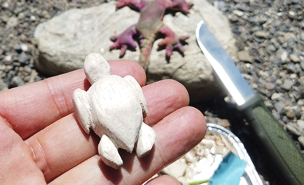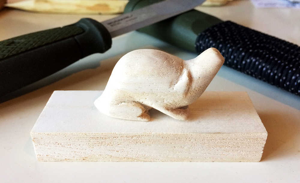 前回うさぎを彫ったので、縁起物ということでカメです。